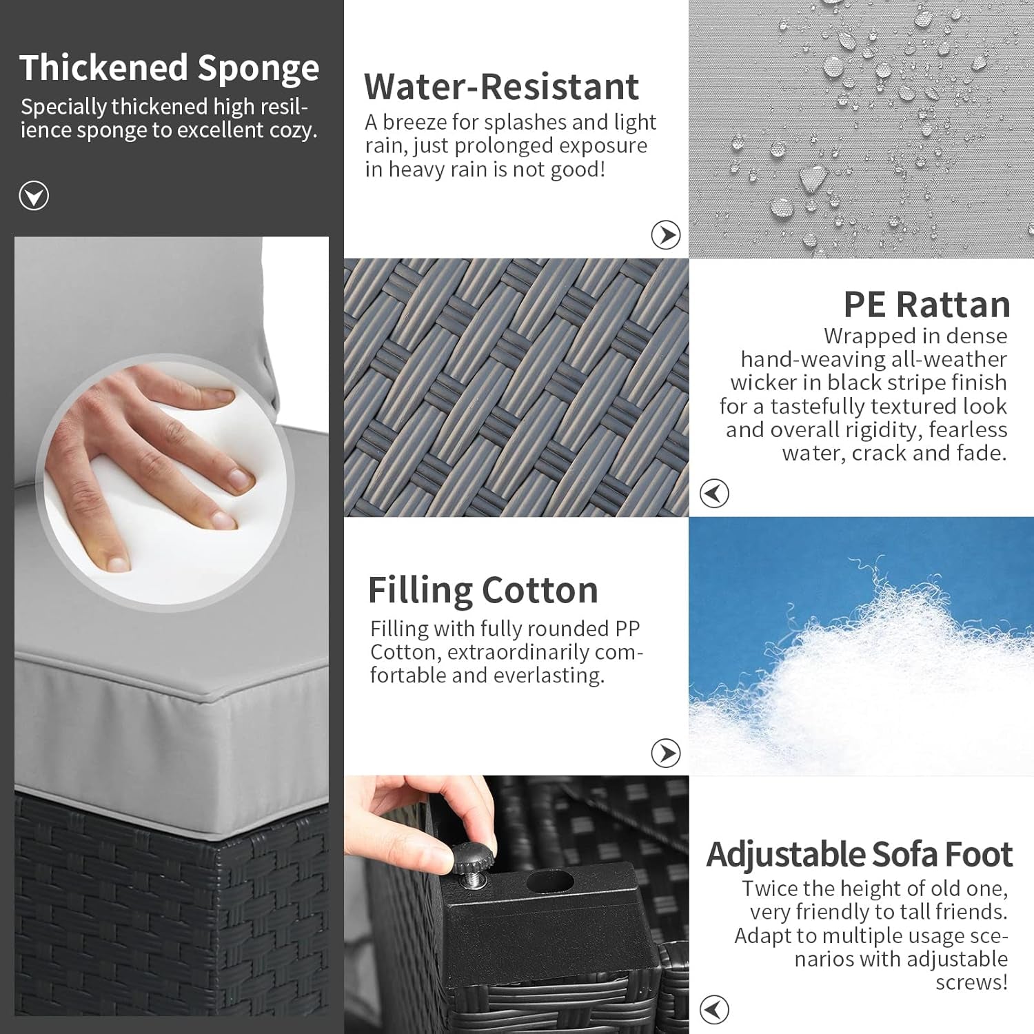 - Exceptional Comfort: Enjoy plush 4-inch thick seat cushions made from high resilience sponge, paired with anti-slip, water-resistant fabric covers for long-lasting comfort.