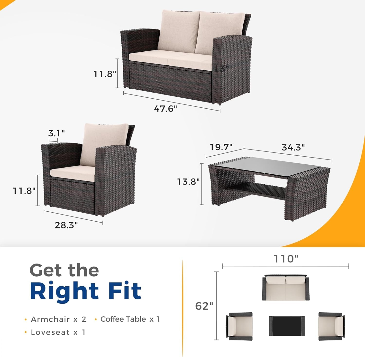 - Complete Outdoor Set: Includes a loveseat, two armchairs, and a coffee table, providing a perfect seating solution for your outdoor area.