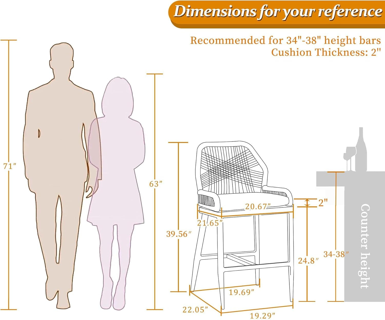 - Perfect Dimensions: Each bar stool measures 21.65"D x 20.67"W x 39.56"H, with a seat height of 24.8", suitable for 34" to 38" counters.
