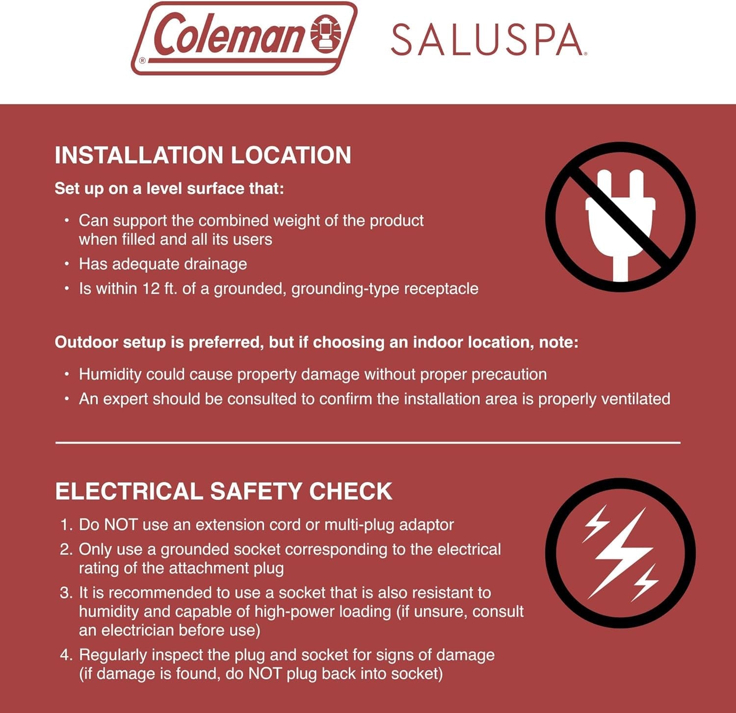 - Temperature Restrictions: For optimal performance, this spa is not suitable for use in temperatures below 39°F.