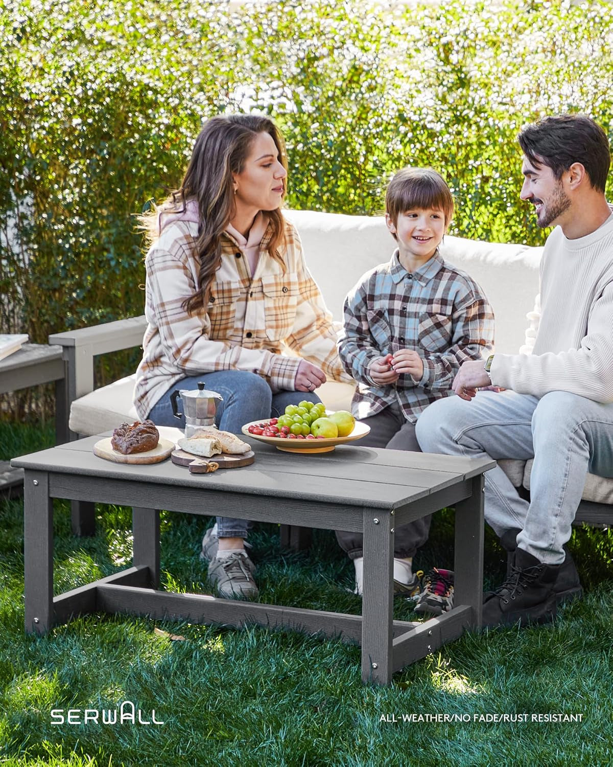 - Exceptional Durability: Made from high-density polyethylene (HDPE) material, this patio set withstands heavy use and various weather conditions, supporting up to 360 lbs per seat.